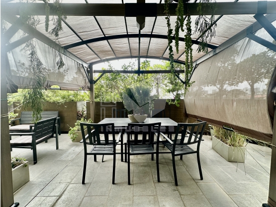 Entre sus acabados de lujo destacan: muebles de cocina adicionales, triturador de basura en fregadero, cerradura digital Yale, torre de lavado, microondas, horno, cocina vitrocerámica, campana extractora, lavavajillas, extensión de barra de desayuno en madera exótica, pared con espejo, librería en el recibidor, armarios de oficina adicionales, soporte de pared para TV, pisos mejorados en bambú premium, cortinas blackout y de privacidad, jardineras de teca en terraza, jardineras verticales, iluminación instalada en terraza, papel tapiz panorámico en sala, armarios adicionales en dormitorio, aire acondicionado en dormitorio, muebles amplios en baños y dispensadores empotrados.