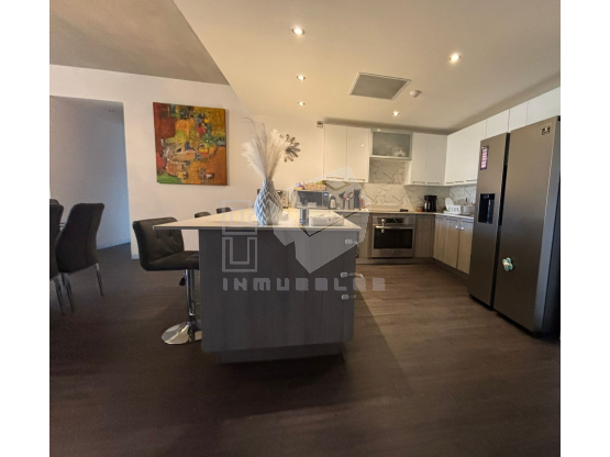 El apartamento incluye dos baños completos, baño de visitas, área de pilas, y dormitorio de servicio con baño completo, brindando máxima practicidad. También destaca por sus amplias alacenas y un mueble especial para bodega, ideales para almacenamiento organizado.