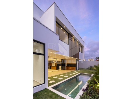 Está equipada con acabados de alta calidad, sistema de riego, prevista para carro eléctrico y paneles solares, ofreciendo sostenibilidad sin comprometer el lujo.