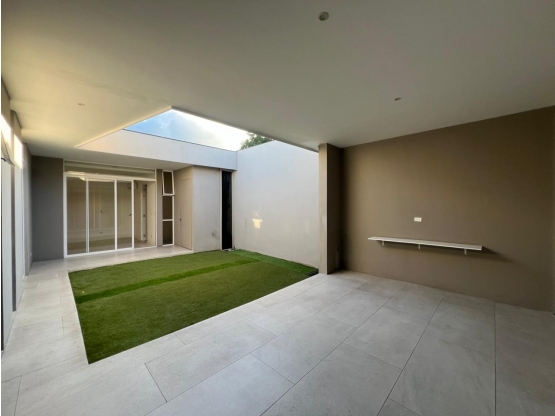 La casa está diseñada en un solo nivel, lo que brinda comodidad y fluidez entre sus áreas sociales. Al ingresar, te recibe un espacio abierto que integra sala, comedor y cocina con un diseño armonioso y moderno. La cocina está equipada con elegantes muebles y sobres de cuarzo blanco. Desde aquí, se accede a un encantador jardín privado, perfecto para relajarse al aire libre, tener una mascota o crear un pequeño oasis natural.
