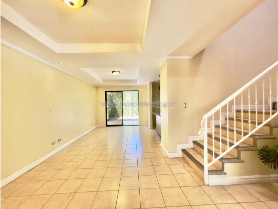 La casa cuenta con 3 habitaciones, 2 baños completos y 1 baño de visitas. Dispone de sala y comedor, cocina con desayunador, área de pilas ventilada, jardín privado, 2 espacios de parqueo y ático para almacenamiento.