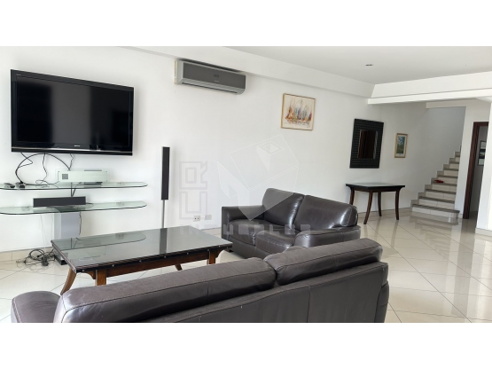 La propiedad también ofrece una encantadora terraza, donde podrás relajarte al aire libre y disfrutar del clima. Si necesitas ayuda adicional, el condominio cuenta con un cuarto de servicio con baño. Tiene aire acondicionado en cada habitacion y la sala. Además, no tendrás que preocuparte por el estacionamiento, ya que tendrás acceso a tres espacios de estacionamiento privados.